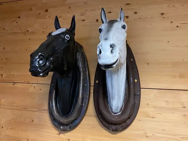 Pferde Köpfe aus poliester gross zum aufhängen : weiss oder schwarz . Preis pro Kopf 125.- muss abgeholt werden . Bei Fragen : 079 380 09 90.