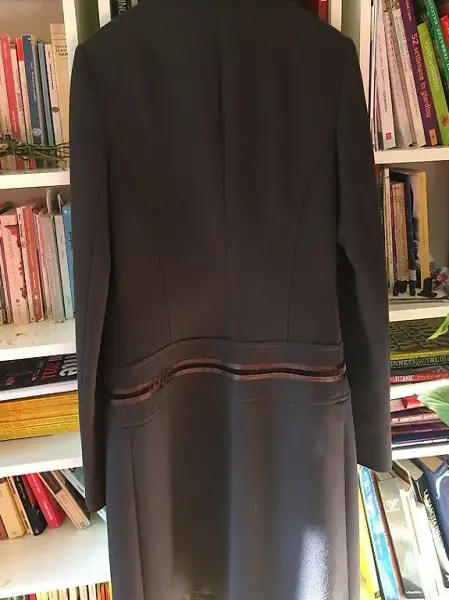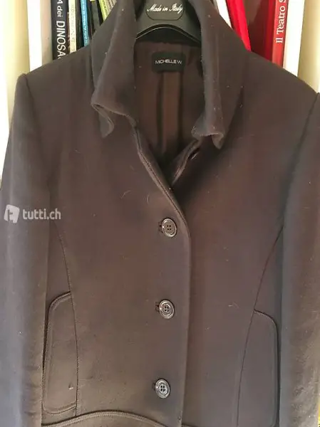 Caldo cappotto 100% lana vergine , taglia 46 italiana, 40 svizzera. Molto comodo e pratico, collo abbastanza alto, ripara dal freddo. Foderato. Usato pochissimo .