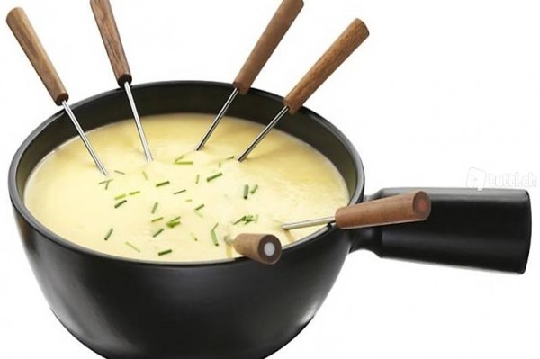 Praktisches und bewährtes Fondue - Rechaud. Set in elegantem look. Die Käsefondue-