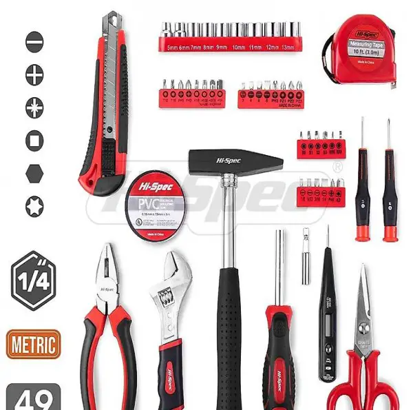 Hammer zur Reduzierung der Armbelastung beim Einschlagen von Nägeln, verstellbarer Schraubenschlüssel für die störrischsten Muttern und Schrauben, Kombizange mit gehärteten Schneiden zum Durchtrennen von Draht und Verschlüssen und einer Blechschere zu Schneiden von härteren Materialien