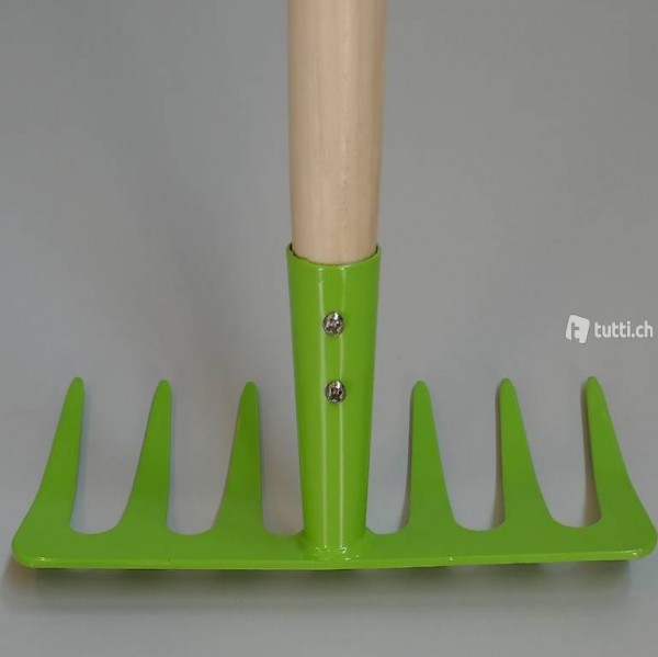 - Holzstiel mit grünem Rechen (7 Zacken)