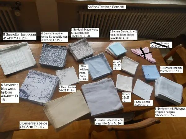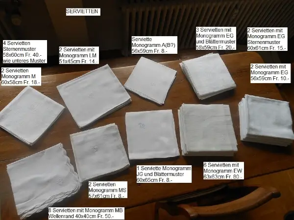 Zu verkaufen SERVIETTEN aus Grossmutters Zeiten weiss und bunt, in allen Grössen, vom Kaffeetisch-Serviettli bis zur Parade-Serviette