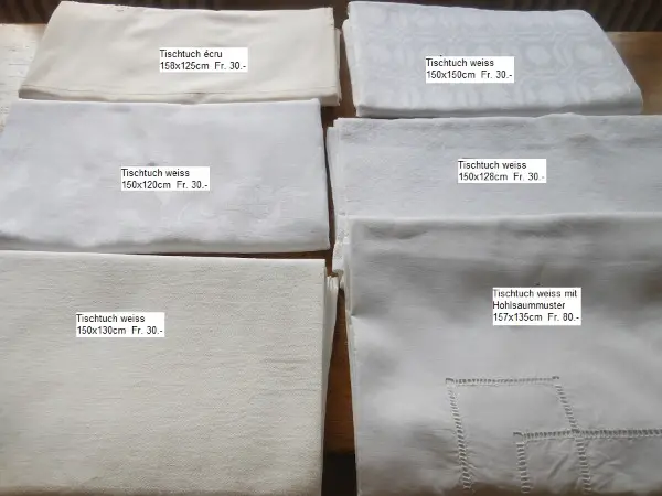 Vintage TISCHTÜCHER weiss und farbig in jeder Grösse, geben Sie mir Ihre Tischgrösse an und ich mache Ihnen Vorschläge