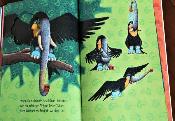 Buch mit "Gucklöchern" mit Sicht auf die Wunschtiere.