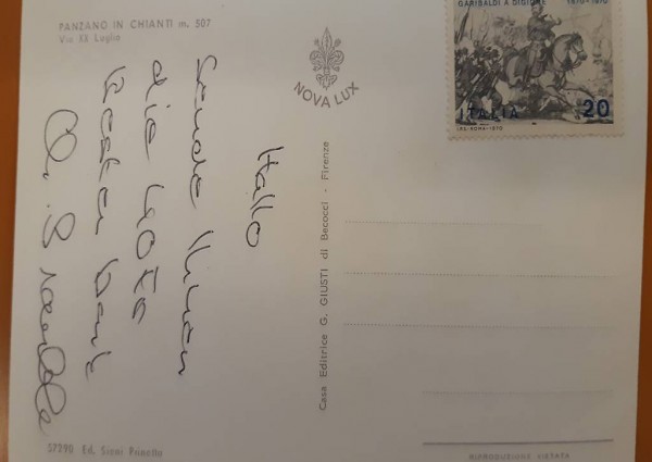 Postkarte von Panzano in Chianti mit Briefmarke