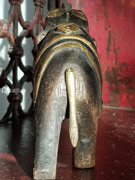 INDISCHER HOLZELEFANT MIT MESSING