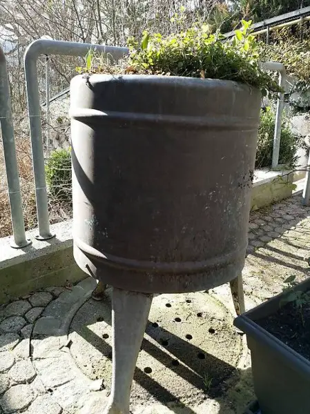 Grosse Wäschetrommel zum Bepflanzen.