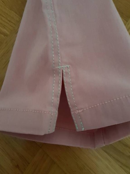 Schöne bequeme Sommeehose mit elastischem Bund. In einem feinem rosaton. Dreiviertel lang. Bundweite 35 cm.
