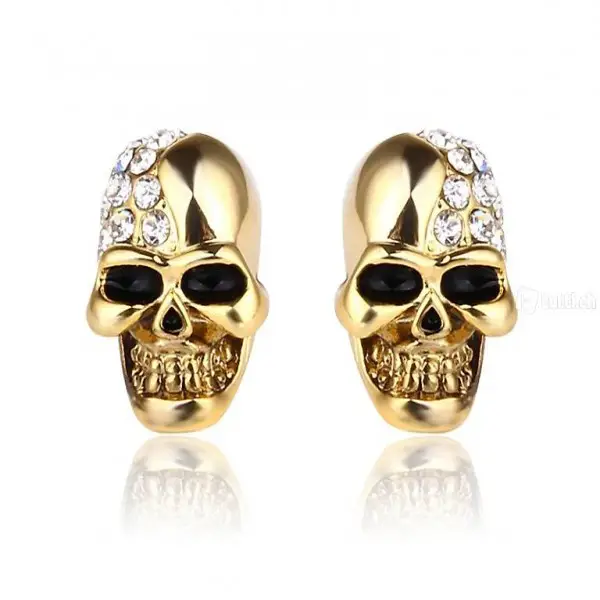 Klassische Ohrstecker in Form eines Totenkopfes, durch die Strass-Steinchen wirken die Stecker rockig und dennoch edel.