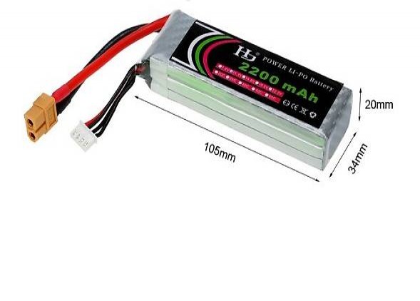 11.1V 2200mAh 25C 3S liPo Batterie mit XT60 Stecker.