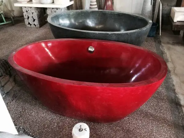 Freestanding bathtub Freestanding stone bath tub basin bath pot bathtubs garden pool outdoor tube spa pool stone basin terrazzo stone resin sanitary oval stone This bathtub is made in Bali by hand from terrazzo stone mixed with resin, this method of manufacture makes it very resistant and light. With overflow protection and pop-up valve.