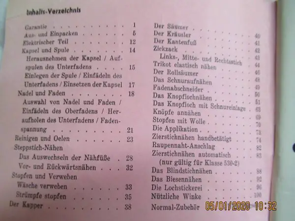 GEBRAUCHS-ANLEITUNG für BERNINA Klasse 530-2, Bernina Record