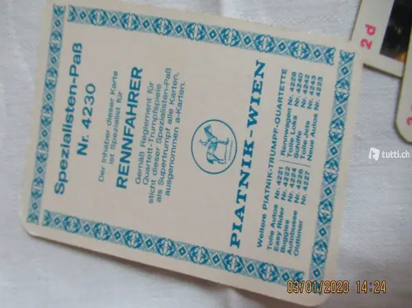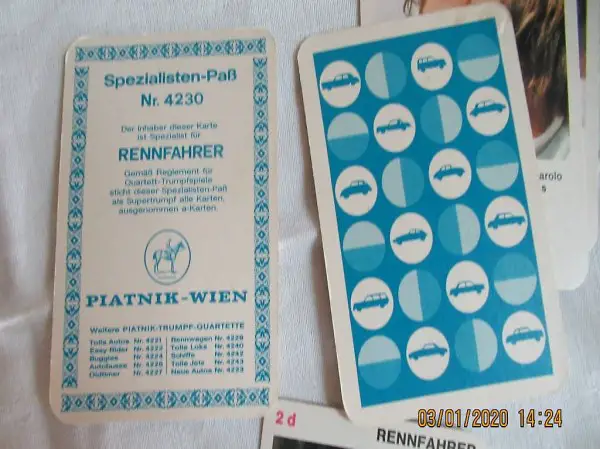 Quartett, Kartenspiel, Rennfahrer PIATNIK - WIEN