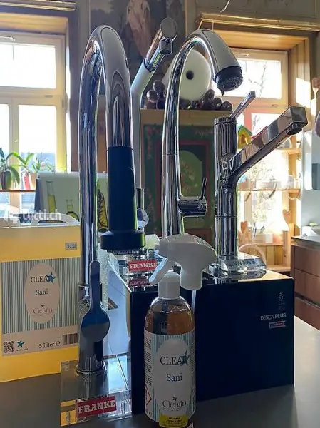 Franke , KWC und Grohe nach rund 20 Jahren noch aussehen wie Neu . Sani ist mit 2 Liter Tornister und 500ml Flasche mit Sprühkopf so grosszügig bestückt dass Ihre ganze Familie von