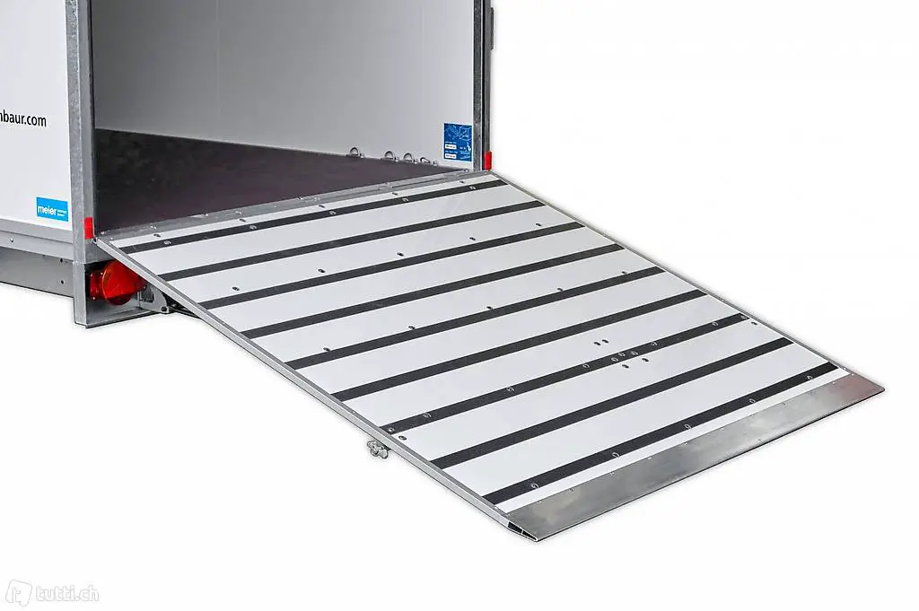 Überfahrwand weiss anstatt Türe hinten, Belastbarkeit max. 1000kg, mit Überfahrspitz und Drehstangenverschluss bei Kofferinnenhöhe 1885 mm