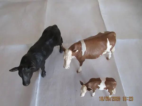 Bauernhoftiere, Muni, Stier, Kuh, und Kalb