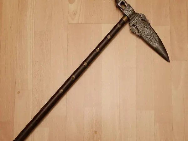 Schaft aus Holz der Länge nach mit einem "eingelegten" Eisen verstärkt