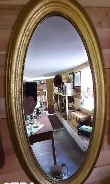 (3631) Spiegel mit vergoldetem Rahmen, oben halbrund.