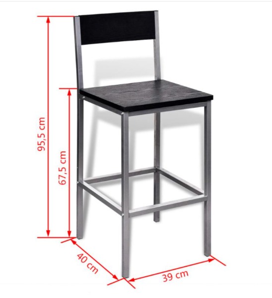 Tisch verstaut werden, um bei Nichtgebrauch Platz zu sparen. Dieses Frühstücksbar-Set besteht aus hochwertigem MDF in Schwarz. Die Frühstückstheke ist leicht zu reinigen und passt zu jedem Dekor. Die hochwertigen Stahlrahmen machen das Set sehr stabil und langlebig. Der Zusammenbau ist ganz einfach. Die Lieferung beinhaltet 1 Hochtisch und 2 Hocker.