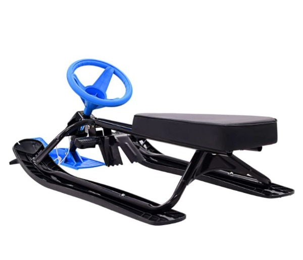 Mit dem Look & Feel eines Schneemobils ist dieser Schlitten perfekt für die meisten Schlittenfans. Der Schlitten verfügt über eine stabile, robuste Stahlkonstruktion mit 3 robusten Skiern. Das Lenkrad und die Bremsvorrichtung sorgen für Sicherheit beim Abfahren der Piste, während der rutschfeste Kunstledersitz eine optimale Rennerfahrung garantiert. Das Zugseil ist so angebracht, dass Kinder auf flachem, schneebedecktem Boden von Erwachsenen gezogen werden können oder eine Fahrt auf weniger steilen Hängen geniessen können. Der Schlitten lässt sich mit dem mitgelieferten Zubehör leicht montieren.