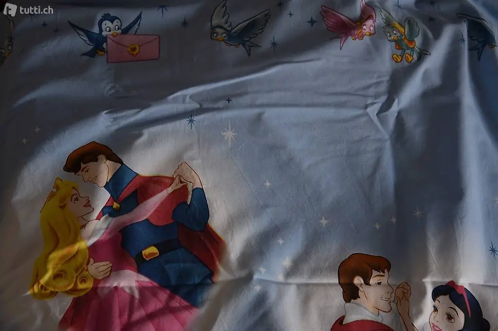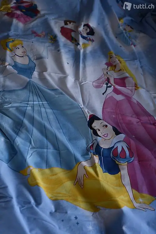 Verkaufen gute erhaltene Kinderbettwäsche mit dem Disney-Sujet "Princess". Die Decke misst 160x200cm und der Kissenbezug 60x60cm. 100% Baumwolle. Das Kissen wird eingeschlagen und die Decke wird mit Knöpfen geschlossen.