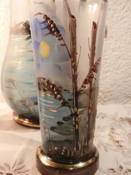 "AUS LIQUIDATION" Schöne alte handbemahlte Karaffe mit 3 Gläser. Guter gebrauchter Zustand.