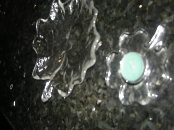 Schöner Kerzenhalter mit Rechaud-Duftkerze in der Form eines vierblättrigen Kleeblatts.