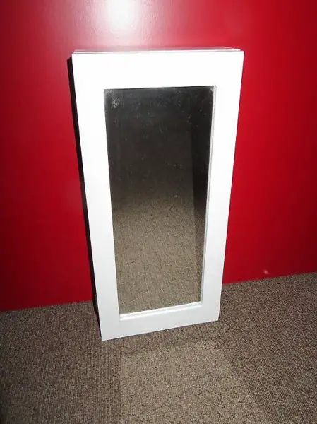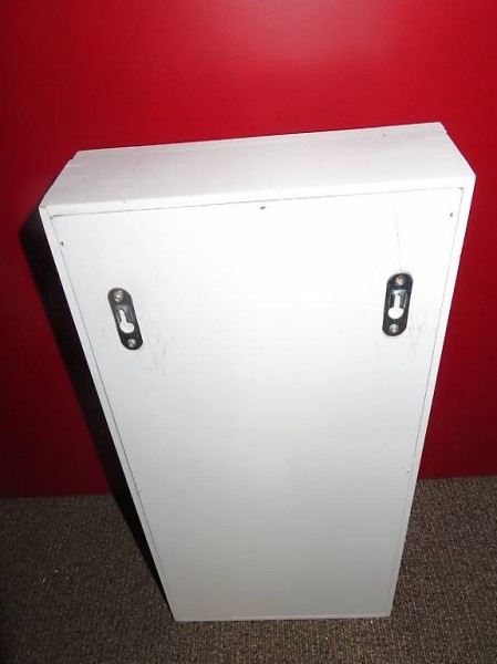 Abzugeben ein Wandschränkli, Holz weiss, aussen mit Spiegel, innen mit Haken (z.B. für Schlüssel), Rückseite mit Aufhängebeschläge, Türe mit Griffmulde, siehe Fotos. Dimensionen ca. 45 cm hoch x 25 cm breit x 7,5 cm tief.