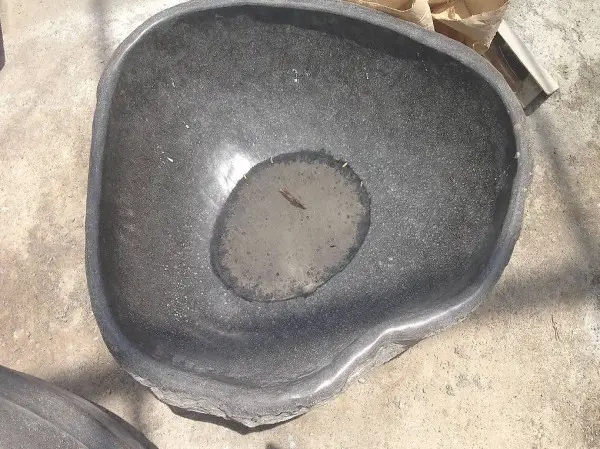 The tub is made in Bali by hand from stone.