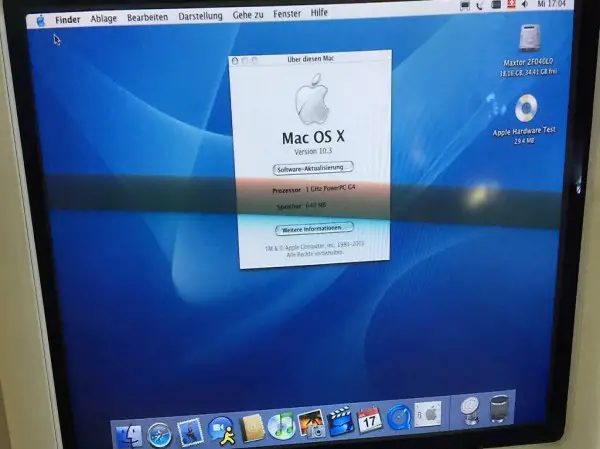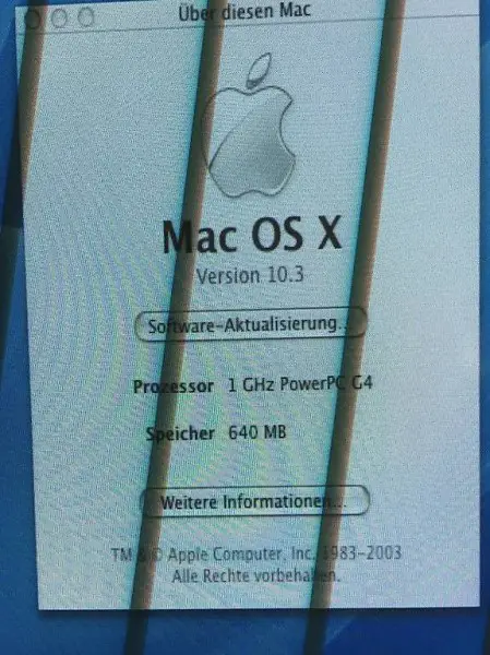 1GHz PowerPC G4, voll funktionstüchtig, komplett formatiert und auf Werkseinstellung zurückgesetzt, mit Originalverpackung, Tastatur, Installations-CDs, Kabeln, nur Maus fehlt.