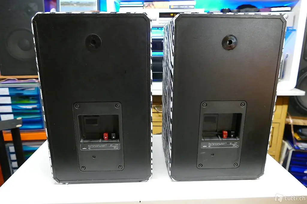 Die Lautsprecher sind Aussen komplett entstaubt und gereinigt worden und die Anschluss-klemmen mit Spezial Kontakt Spray behandelt.
