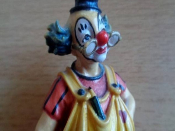 Sehr schöner, farbenfroher und detailgetreuer Clown, Trompetenspieler.