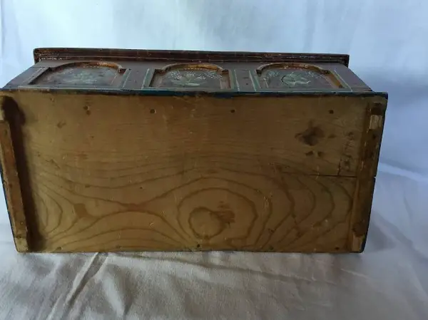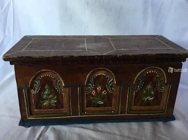 Original Bemaltes kleines Holz Trueli ca von 1900. Masse 35 cm x 14 cm x14 cm. Porto CH gratis.