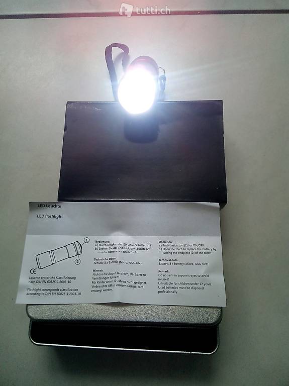 Geschenkbox, inkl. 3x Stk. neuen Batterien. Länge der Lampen 9 cm. Preis Fr. 26.- inkl. Versandkosten.