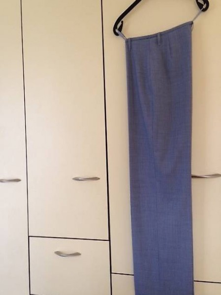 Chic und modisch in den Herbst: elegante Hose in Hellgrau, hoher Bund mit Gurtschlaufen, Grösse 38, leicht und angenehm zu tragen. Sehr pflegeleicht: maschinenwaschbar (30 Grad). Aus 75% Polyester, 20% Wolle, 5% Elasthan.