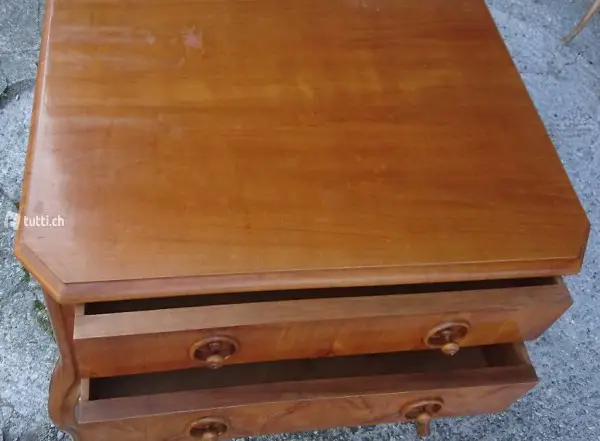 Kommode aus Nussfurnier mit 2 Schubladen. Stammt aus den 50er Jahren.