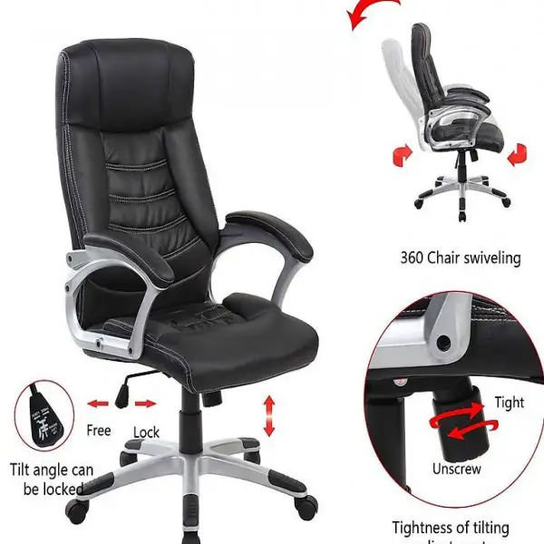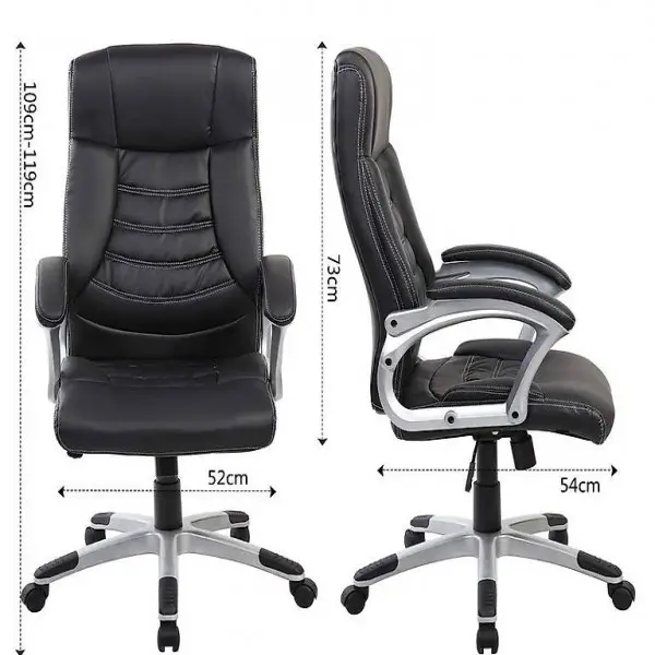Chefsessel Leder Imitat Bürodrehstuhl Schreibtischsessel Schwarz