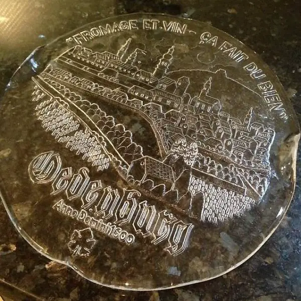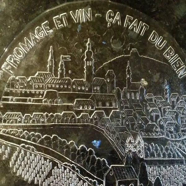 mit Stil von Oedenburg. Inschrift "Fromage et vin - ca fait du bien", Durchmesser 32 cm.