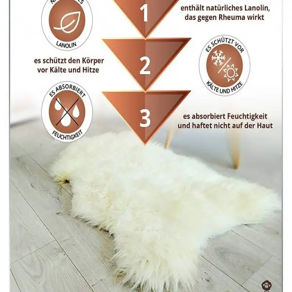 HOHER KOMFORT: Sehr weiches, flauschiges und natürlich wärmendes Fell. Die Wollfasern sind hautfreundlich, sie wirken entspannend und druckentlastend. Das Fell passt sich dem Körper individuell an. So wird die Durchblutung gefördert und Muskelverspannungen werden dadurch gelindert.