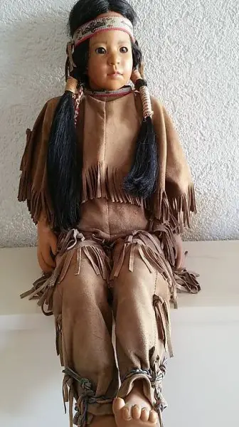 Kopf, Arme und Beine aus Vinyl - Körper aus Wildlederersatz.