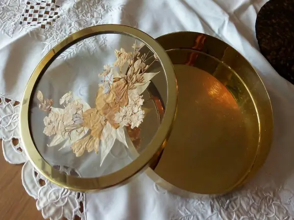 mit getrockneten Blumen unter 2 Glasscheiben
