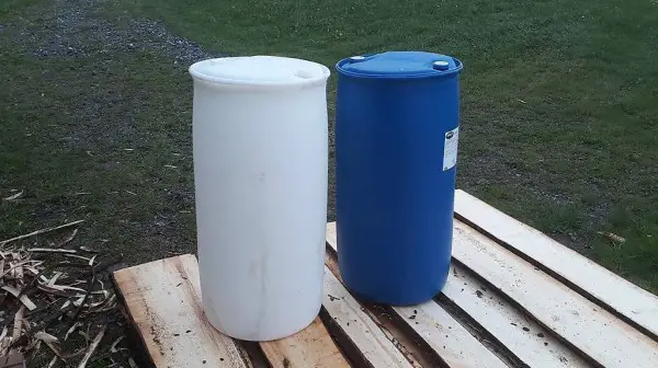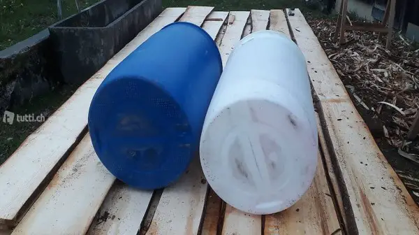 2 Kunststofffass in sehr gutem zustand. Einsatzbereit. Es war Frostschutzmittel drinnen vorher. Durchmesser 57 cm Höhe 92 cm