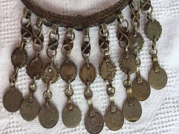 mit Lapislazuli und Münzen verziert. Vermutlich eine