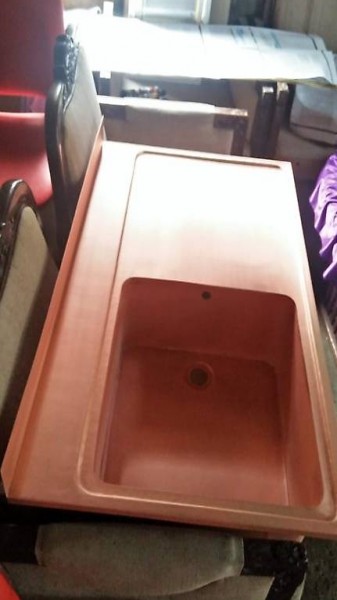 Das Waschbecken kann in anderen Materialien, Ausführungen Glatt oder gehämmert, Massen und Farben gefertigt werden