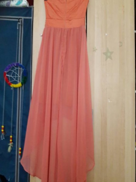 Sehr schöne Abends Kleid, Farbe Orange, vorne Schleier bis Knie, hinter bis Fuss,