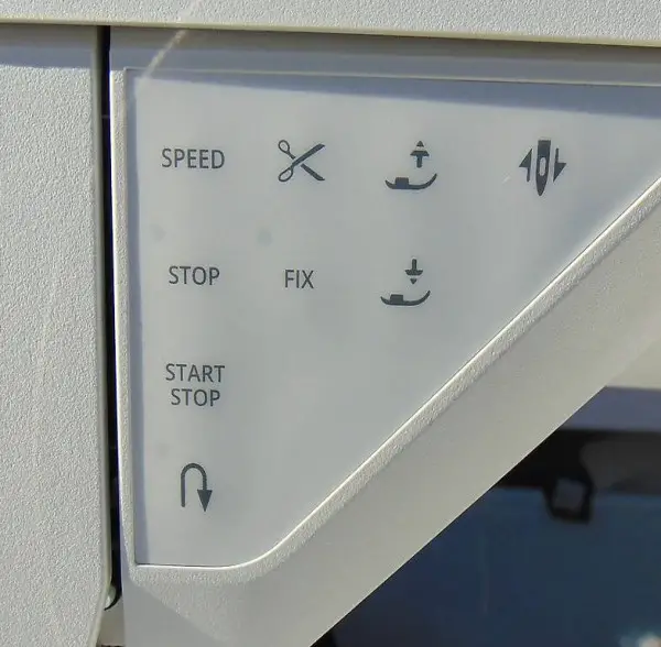 Komfortable Funktionen auf Tastendruck: Nadel Hoch-/ Tiefstellung, Start/Stopp, Vernähen (FIX).