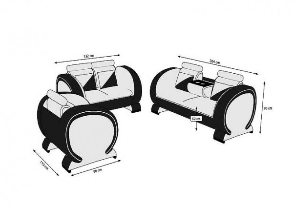 3-Sitzer: ca. 204x90x90cm