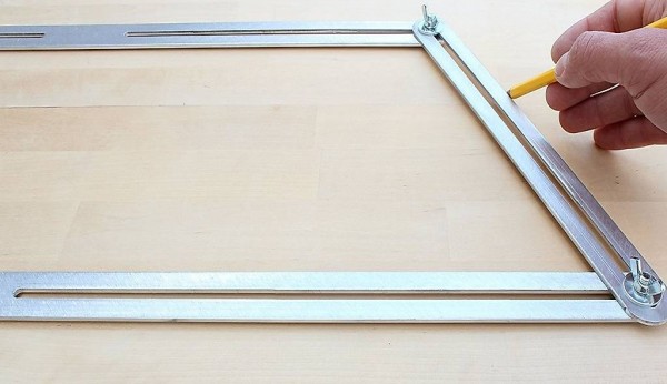 Die Winkelschablone eignet sich für das Übertragen von vieleckigen Konturen auf Werkstücke. Die Arbeit mit der Winkelschablone ist dabei einfacher als das Ausmessen mit dem Massband oder