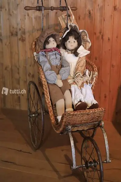 Wagen leicht restauriert, ein absolut einzigartiges Stück, auch für verwöhnte Sammler. Masse H 103 / L 100 /b 48 .