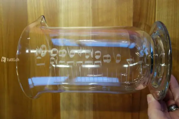 dieses sehr alte Glas hat die Höhe von 18 cm und einen Durchmesser von 10 cm. ich verstehe leider die Graduierung nicht....